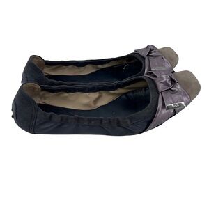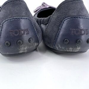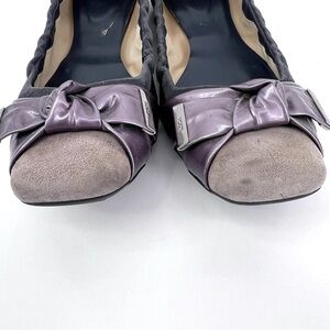 Tod’s Patent Leather and Suede Scrunch Ballet Flats with satin lining and bows