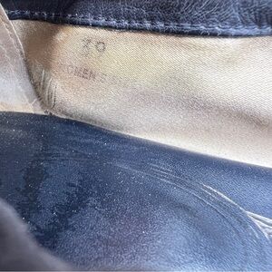 Pre-owned condition with signs of wear as shown in photos. Not mint. Wearable but with scuffing, tear in satin lining, some wear on tread. See photos and video.
