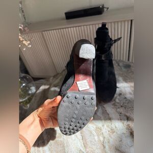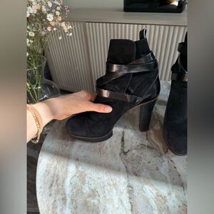 Tod’s black suede leathered wrap around strap chunky heel ankle boots size 7