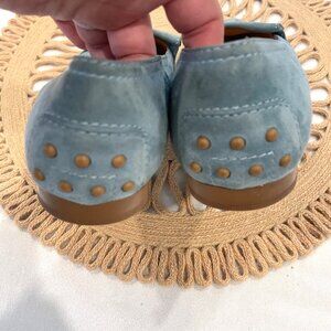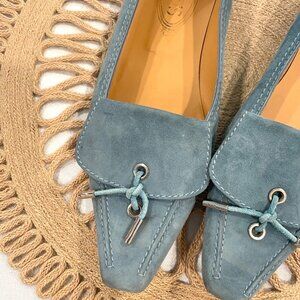 Tod's of Italy Light Blue Pointed Toe Suede Flat Loafers Size 9.5