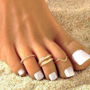 Toe Rings Foot Jewelry 3pc Minimalist Gold Adjustable Beach Boho Trendy Stylish