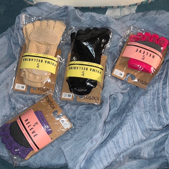 Toe socks. Soft material for a comfortable fit. Run, and jump. Great for an array of body disciplines. Yoga, ballet, gymnastics etc. soft padded bottoms with grip pads. It feels chilly in your home? Put your toe socks. Warm and comfortable. For women and children. Only extra small available. Can fit woman’s sizes 3-5.5. Youth sizes 1-4.