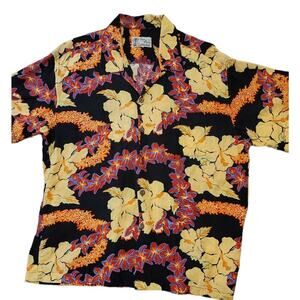 Toes On The Nose Tropical Floral Print 100% Silk S/S Hawaiian Shirt Sz. L.