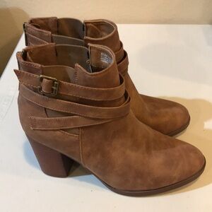 Toetos Chicago Faux Leather Distressed Ankle Boot w/Buckle & Zipper Back-8.5