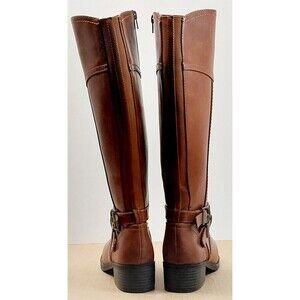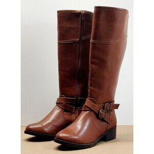 Toetos Womens Riding Boots Cognac Brown Size 7M Buckled Inner Zip Classy BNWOT