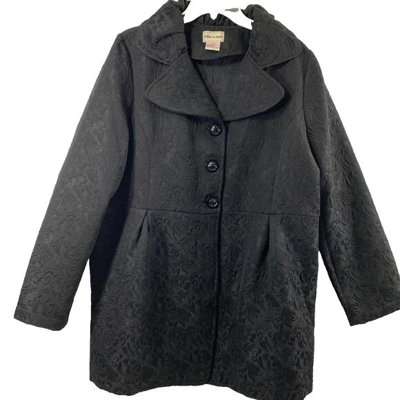 Toffee Apple Dress Coat Womens XXL Black Floral Button Up Jacket Pockets Unlined
