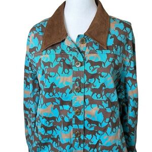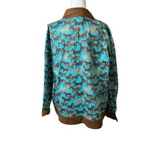 •Style Profile: Toffee Apple Womens Jacket XL Teal Brown Horse Print Collared Equestrian Novelty