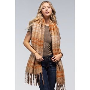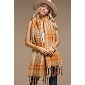 Gorgeous plush and soft plaid print brushed oblong scarf with braided tassels on edge