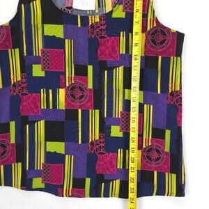 Tofy Print Sleeveless Top Women 6 Multicolor Blue Purple Vtg Capsule Layering