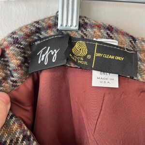 Tofy Size 14 Classic Wool Brown Retro A Line Midi Skirt Plaid Boho Chic Casual