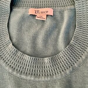 EUC -- Soft, comfortable cotton/acrylic blend. Decorative finish on the jewel neckline and hem. Nice under a blazer or on its own. No snags, pilling or stains.