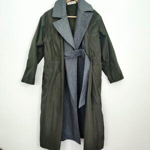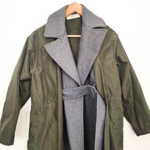Toga Pull Double Layer Wool Nylon Trench Coat in Green Grey Medium