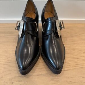 Toga Pulla - Black Wedge Booties w/Buckle, Size 39