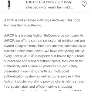 Authentic Toga Pulla, Pinstripe Black Cupra With attached mesh hem. Incredible Piece, Excellent Condition, (Compare on-line at 1st