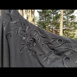 One shoulder. Embroidered on front top. Excellent condition.