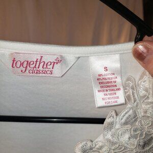 Together Classics Women's White Embroidered V Neck 3/4 Sleeve Top - S