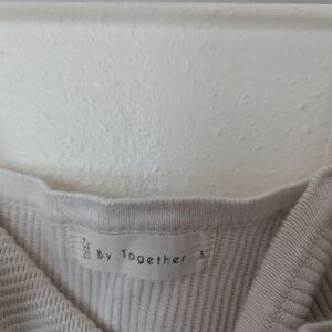 Ribbed knit camisole with slim adjustable straps. Soft stretch fabric for a close, comfortable fit. Simple cream hue for easy styling.