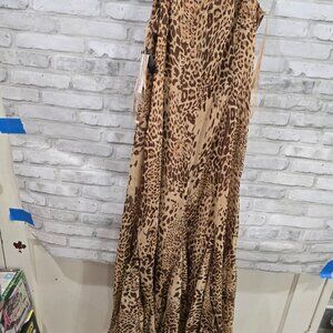 Together Size 10 Women Cheetah Maxi Spaghetti Strap Tank Dress NWT