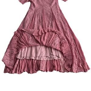 Together! VTG Lace Crinkle Rayon Overlay Layered Short Sleeve Rose Maxi Dress 10