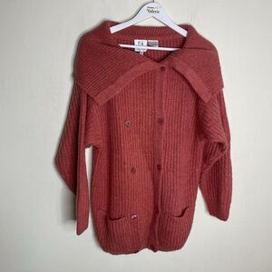 Together Vintage Acrylic Button Slouchy Funnel Neck Cardigan Long Sweater Small