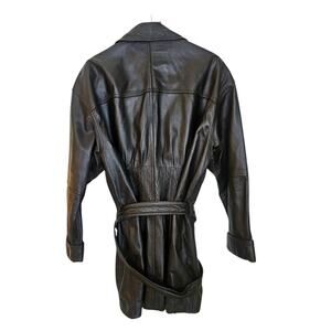 Together! Vintage Dark Brown Leather Double Breasted Trench Coat with Belt