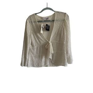 Together Women's White Embroidered Front Tie Blouse Size 12
