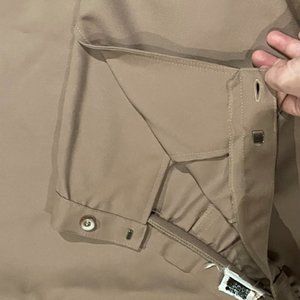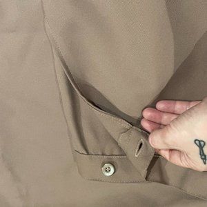 Vintage high-end Spiegel catalog Together! Brand exclusive. This 70s khaki brown/beige pleated skirt has hemmed a-line wrap midi length with button side closure and high rise.