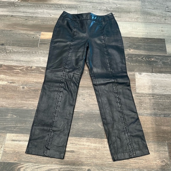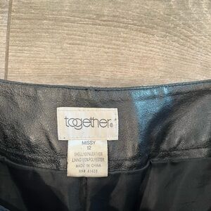 Together vintage 100% Leather Womens Pants Polyester Lined Size 12 Black lacing