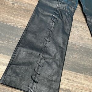 Vintage Together 100% Leather Womens Pants Polyester Lined Size 12 Black laceing.