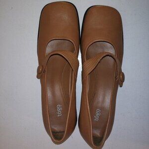 Togo Ladies Size 9M Square Toe Tan Leather Upper Block Heel Shoes