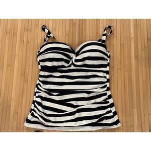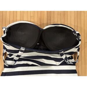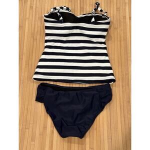 Togs Swim Tankini Set Sz 8 Navy Blue White Stripe Padded Bra Multiway Straps