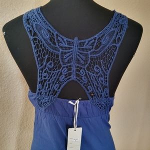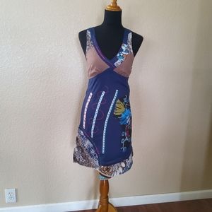 Toi Et Moi Floral Multicolor Print Crochet Embroidered Sleeveless Sheath Dress L