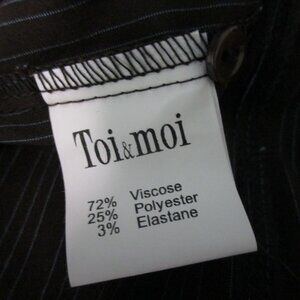 Toi & Moi Blouse Fitted Brown Button Down Pinstripe French Cuff Size L NWT $58