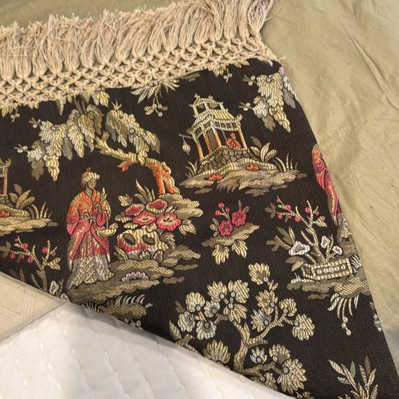 Toile Throw Blanket, Asian Garden Pagoda Fabric, Decorative Designer Throw
