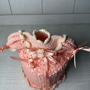 Toilet Paper Vintage Cover Doll Peach Crochet Grandma Cottage Victorian