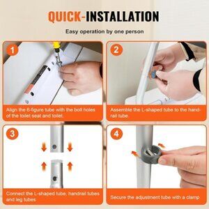 Simple Installation Process: Installing the handicap toilet rails is straightforward, requiring only a screwdriver. Its design, featuring snap adjustment and hand-tightening nuts, facilitates easy one-person assembly.