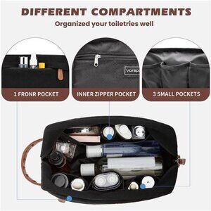 🧿Large capacity & organized compartments: Size 10 x 5 x 5.5 inches. 1 Main compartment which is roomy to fit facial cleanser, electric shaver, travel shampoo, and other toiletries. It also has 3 small mesh pockets and 1 long mesh pocket with a zipper inside to store all of your little toiletries without getting disorganized and easy to find. 1 front zipper pocket that provides extra storage with ease