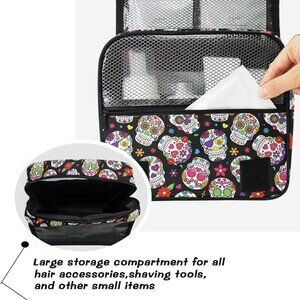 Large & Roomy: The makeup bag is coming with a large capacity main compartment to store all of your toiletries such as toothbrushes, shaving kits, cosmetics and other travel accessories. It s also equipped with several compartments to organize travel essentials without being in a mess. There is mesh pockets for easy accessing to travel sized skin care items and other personal items.