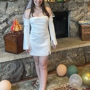 Tojha White Off The Shoulder Mini Dress MEDIUM Scuba Cocktail Ruched Bridal $335