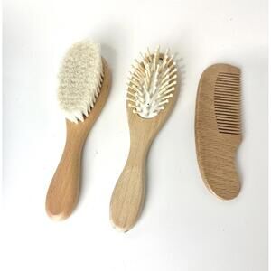 Discover the perfect grooming solution for your little one with this exquisite Natural Wooden Baby Brush Set. This Tokcom Baby/Toddler Hairbrush Set with soft Goat bristles is crafted from high-quality materials, this set includes a soft goat hair brush, a gentle wooden bristle brush, and a fine-toothed comb, all designed to care for your baby's delicate hair. This elegant set not only promotes healthy hair growth but also ensures a soothing experience for your baby. Encased in a beautifully designed box, it makes an ideal gift for new parents. Key features include: