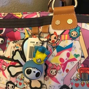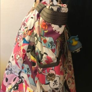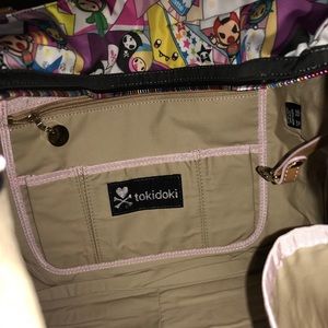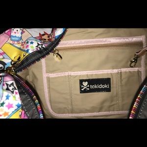 NWT Tokidoki Amica Geometric Girl, “Rare, Retired"- Main top zipper closure. Two outer side pockets with snap closures. Inside back has two divided slip in pockets. Inside front has a zipper and three slip in pockets. Carabiner for easy to find keys. Approximately 12 x 21 x 12. Strap Drop 9”.