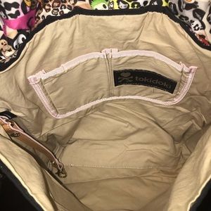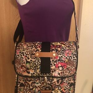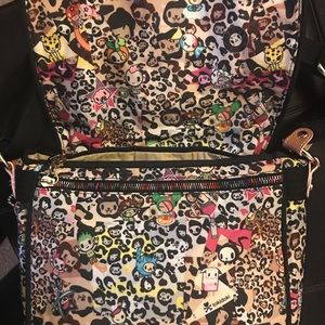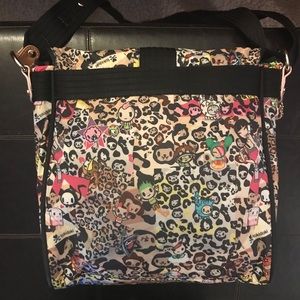 Pre-loved; Original Owner- Tokidoki Marina Leo Small Messenger. From the original Tokidoki LeSportsac collaboration 2006, almost vintage!! Crossbody Shoulder Bag. Main flap closes with gold color clasp. Front has zippered area pocket. Inside had caribiner for easy to find keys. Back inside has two open slip in pockets. 11 X 10 X 4 Strap drop 11”-24”. More love to give- very clean inside & out- look at pics this is the actual bag you will receive. Pet and smoke free environment. Qee available removed when this bag was used. Ask questions.