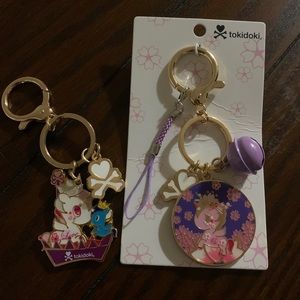 I’m selling 2 tokidoki keychains. The one isn’t attached to what it came in but it’s in perfect condition. Also - the one on the left did NOT come with a bell. If you’d like one and not both - please let me know!