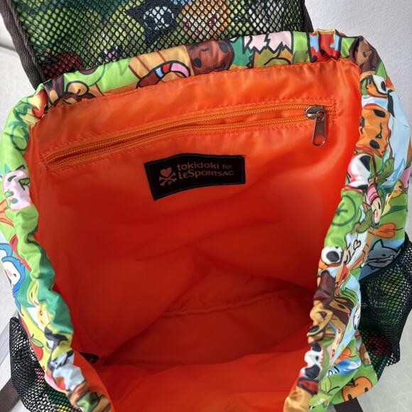 • Interior Lining: Bright orange nylon with Tokidoki x LeSportsac label.