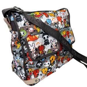 Tokidoki bag, LeSportsac Stellina, Paradiso Inferno print, Tokidoki crossbody, LeSportsac messenger, Tokidoki collectible bag, kawaii bag, limited edition LeSportsac, Adios Tokidoki, Harajuku fashion, anime bag, colorful messenger bag