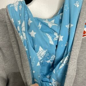 Tokidoki Unicorno Heather Grey Full Zip Hoodie Pattern Lined Hood Blue Small