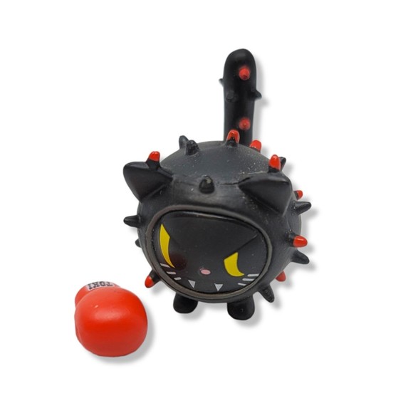 Spikes has little red boxing glove with the words toki on it