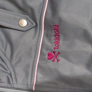 Tokidoki gray embroidered jacket skull cross bones women's size Large