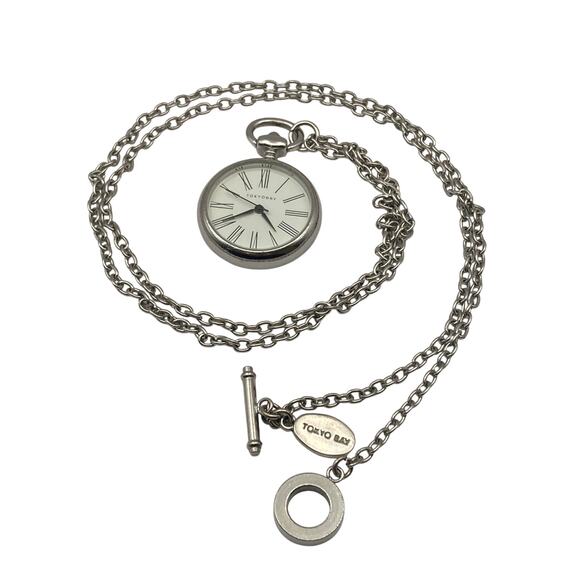 Tokyo Bay Quartz Pendant Pocket Watch Necklace 30" - Open Face - New Battery