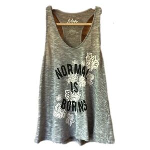 Tokyo Darling Normal is Boring shabby-chic floral racerback burnout tank top Jr size S. Gently used. 55% polyester, 45% rayon.